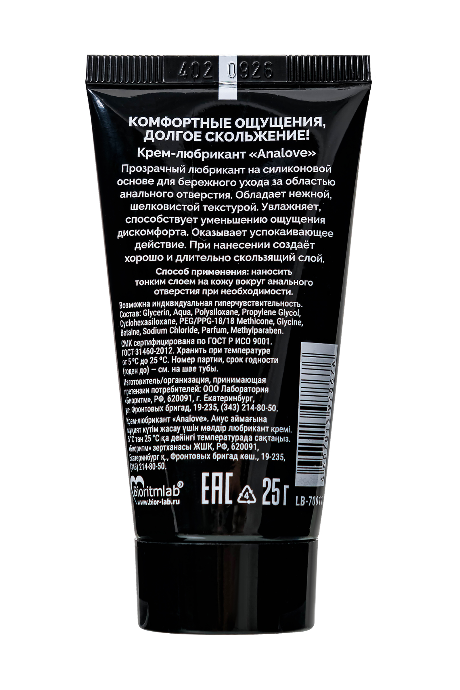 Анальная силиконовая смазка с обезболиванием. Прозрачная. Обеспечивает супердлительное скольжение. Применяется для комфортных интимных отношений без болевых ощущений и неприятных последствий в виде потертостей, трещинок и ссадин. Суперэкономична в использовании: супердлительна по действию (не впитывается и не высыхает, обеспечивая длительное скольжение), гипоаллергенна (химически инертна, не взаимодействует с кожей и слизистыми), не содержит в своем составе жиров, минеральных и растительных масел, обладает охлаждающим действием - минимально влияет на рН и микрофлору половых органов,  не оставляет следов на белье, легко отстирывается, полностью совмещается с латексными и полимерными материалами (презерватив, вибратор, фаллоимитатор, вагинальные шарики и другие игрушки).