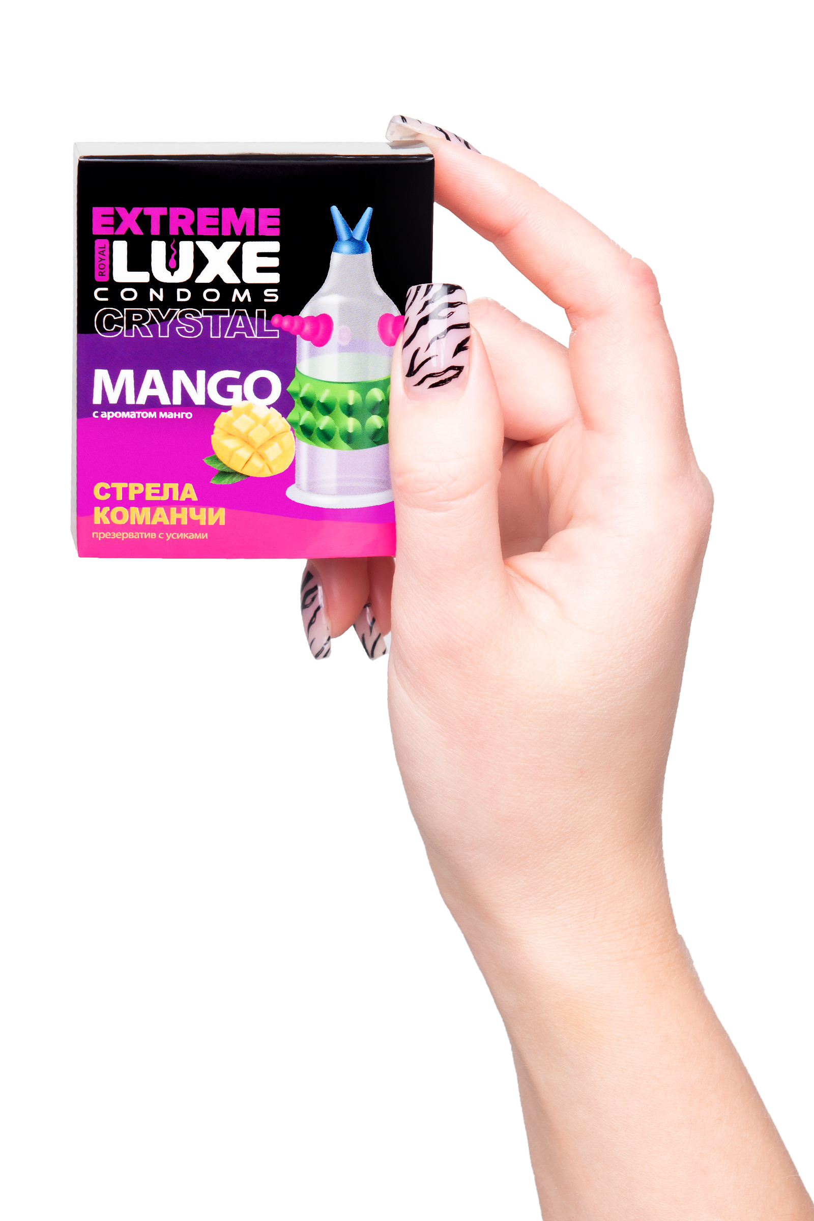 Отбрось сомнения и предрассудки, пора довериться желаниям и погрузиться в первобытные инстинкты. Запусти свою стрелу Каманчи прямо в ее нежное тело с презервативом Luxe серии EXTREME. Стимулирующий рельеф из выпуклых шипов и конусов не оставляет шансов избежать оргазма, ведь стрела Каманчи бьет прямо в цель. Латексный презерватив обеспечивает надежную защиту, а точечная стимуляция уверенно приведет ее к наивысшей точке наслаждения. Экзотический аромат манго доставит дополнительное удовольствие обонятельным рецепторам. Пора расширять границы наслаждения с презервативами Luxe серии EXTREME - надевай и стимулируй.   Качественный латекс    Силиконовая смазка   Ребристый рельеф   Протестировано электроникой .Толщина стенок 0,06 мм